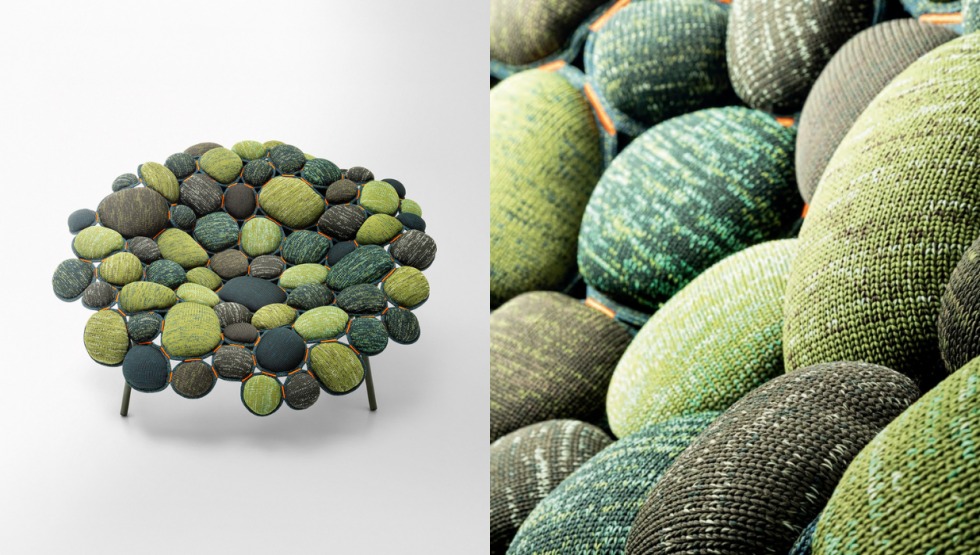 Expandindo a coleção “Mottainai” – mais especificamente a linha “Metamorfosi” – Paola Lenti e Humberto Campana se unem no lançamento de outro design, a poltrona “Miriade”. Segundo Humberto, a inspiração por trás está numa “comunidade de joaninhas”. Dessa forma, é como se todas estivessem reunidas no galho de uma árvore, o que resulta num desenho espontâneo de várias pequenas almofadas juntas.